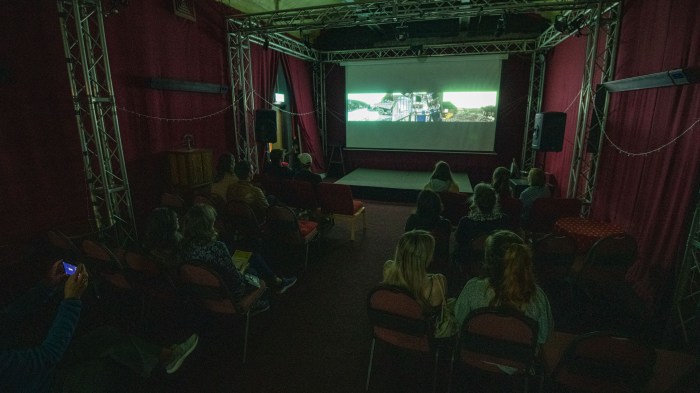Attendees sit inside Jamie Jenkinson’s immersive 5:1 surround system audio installation, ‘Gathering’