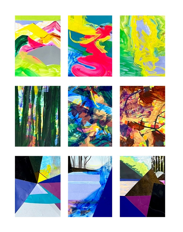 “How the Light Gets Out” is a series of investigations into, and manifestations of, how the light in the gorge sparkles, spreads, and shares itself into the forest, through us and our work, and into the world. Featured in the PLACE Collective ‘See Here Now’ exhibition, collages made with visual data collected in the forest use composition, form, texture, colour, and gesture to research questions such as: