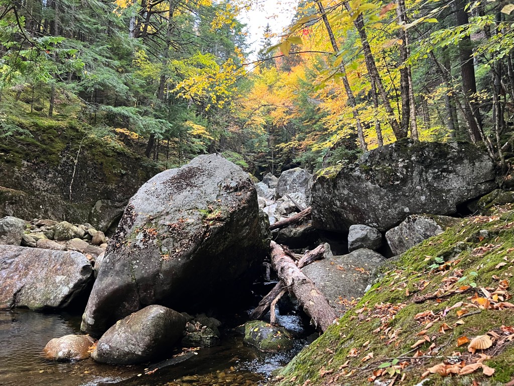 Within Hubbard Brook Forest runs its namesake brook. In that brook, about a mile upstream from the forest boundary, is a gorge. In 2022, light caught by this gorge piqued Rich’s curiosity. Before long, we found ourselves at the foot of a magnetic pool of light.
