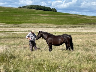 So much joy glints in Can’s eyes as she tells me about the wildflowers returning – milkwort, butterwort, lousewort – and Sam’s newest revelation in life, swimming in the lake, makes him sit forward and gesture with his arms his feeling of being in his own air bubble, as he bobs in the water, looking back up the fell. They both agree: closing the gate at the end of the day is one of the wonders of being here – a moment when they can look out at the land, a day’s work done, and wander down the fell back to the farmhouse.