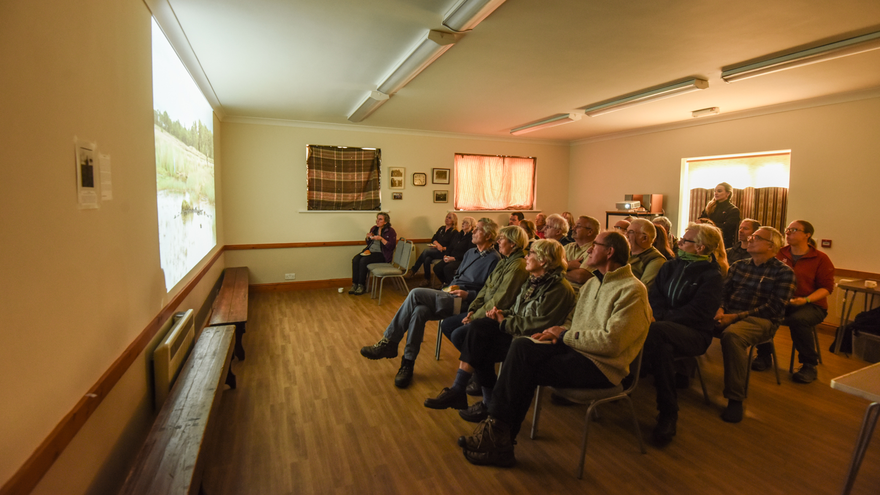 Ali in conversation in the village hall, at the Big Dig Day, November 2024