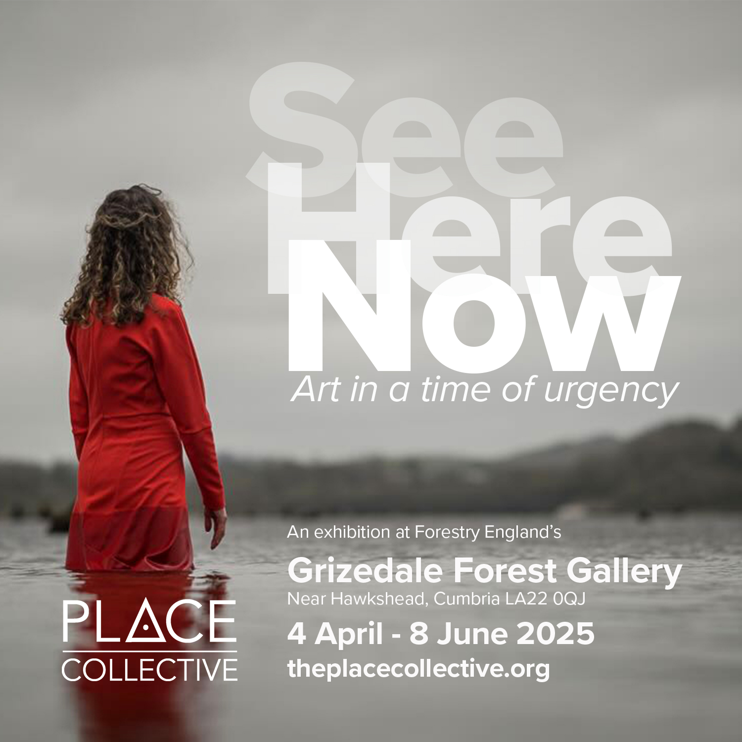 While the exhibition is in Grizedale Forest Galleries, PLACE Collective artists will be gathering for a weekend of sharing, eating, discussing, exploring – and will be making plans for an online symposium to frame a wider conversation about art, artists and others, finding inspiration, collaborating, and taking action in a time of urgency. The See Here Now project will be ongoing.