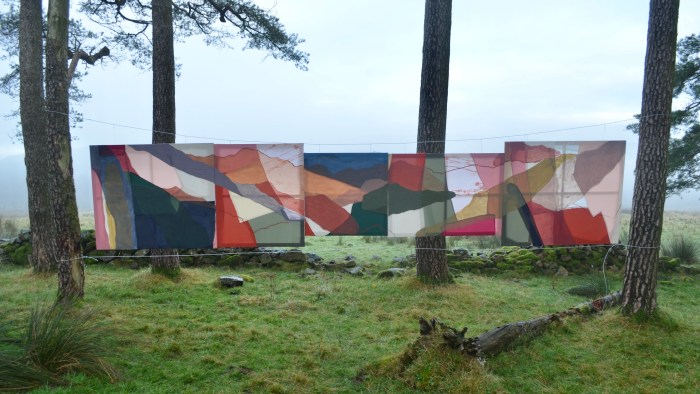 “Recently, I’ve explored how I can evoke the tactility of my experience of landscape digitally, through a contemplative film of my painting Glen Muick. Hanging this 20-foot long painting between trees, with light shining through the materials, really transformed it. I’m thinking more about slowing down, appreciating and really looking at our landscapes and new ways of seeing painting. This has sparked ideas about how to expand my painting to physically exist within the landscapes that inspire them.”